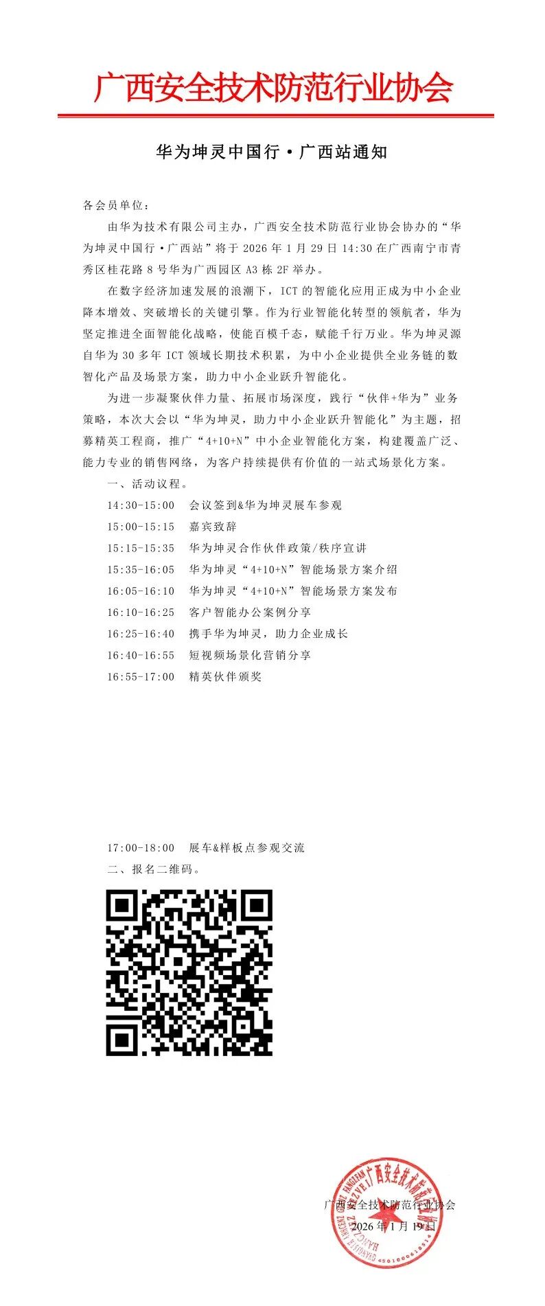 广西安防协会“华为坤灵中国行 · 广西站”通知